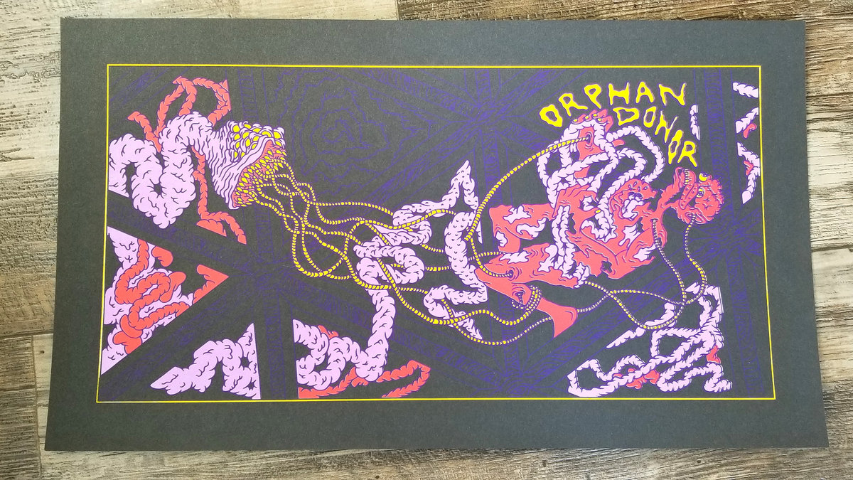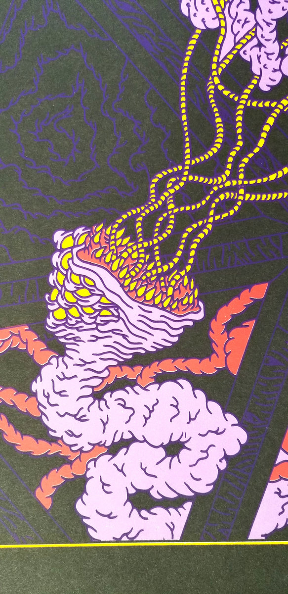 24"x13.5" 4 color Hand screened artwork by James Ravelle @melted.gif. Screened by Matt Treavel at Axelrad printing.